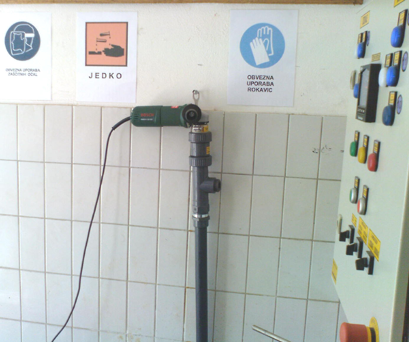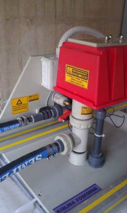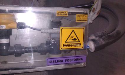 Naprava za doziranje je namenjena izvajanju varnega doziranja kisline na linijo kemijske pred obdelave ali druge sisteme .