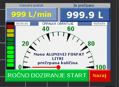 2. KO IZBERETE ROČNO DOZIRANJE IN KEMIKALIJO Z TIPKO ROČNO DOZIRANJE START ZAŽENETE ČRPAKO.
