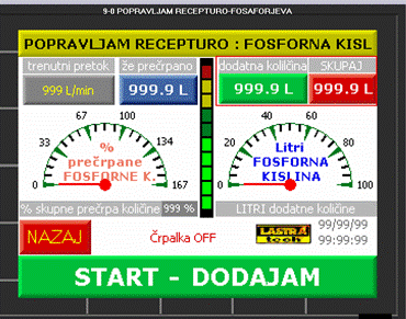 KOLIČINE SO ZOPET NA NIČLI IN Z TIPKO POTRDI IN START SE PREČRPA NOVA KOLIČINA.