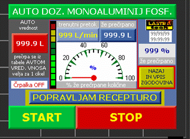 PRITISNETE START IN ZAČNE SE AVTOMATSKO DOZIRANJE. Z TIPKO STOP PREČRPAVANJE USTAVITE.