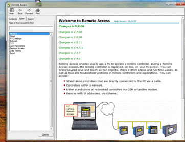 Ko poženemo program za daljinski dostop se nam odpre majhno okno kjer nastavimo parametre z PC nastavitvami. Ko so le te nastavljene se lahko testno povežemo in preizkusimo delovanje omrežja. Ob zapustitvi menija pa potem le z klikom v trenutku pokličemo kontroler in že se nam pokaže na monitorju kopija OKNA KONTROLERJA ki je trenutno aktiven z vsemi spremembami , števci v ONLINE povezavi. Tako lahko z miško izvajamo ukaze ONLINE tako, kot da smo prisotni ob napravi.Hitrost odzivnosti je odvisna od hitrosti povezave , vendar se moramo zavedati da je v najboljših primerih vsaj sekundna zakasnitev odzivnosti.