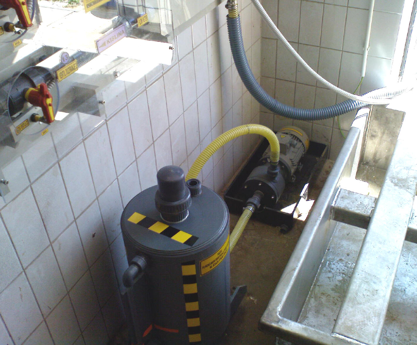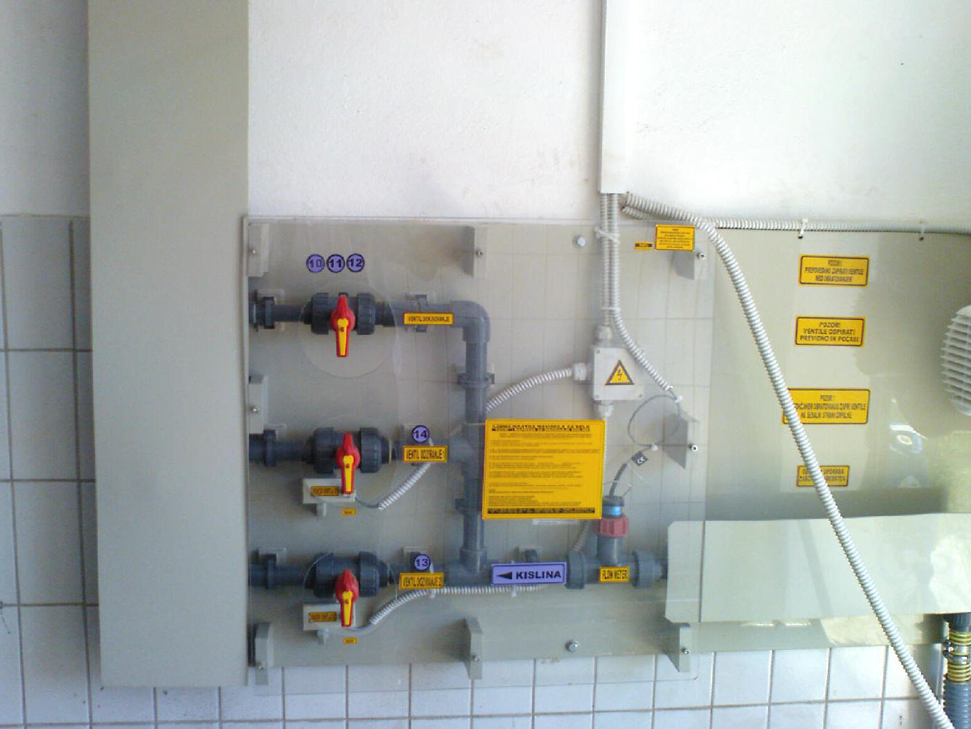 2. funkcijskega dela ki je sestavljen z cevovodov dozirne črpalke dozirnih armatur (ventili, cevovodi,spojke kolena holandci,) sesalne posode , sesalnega in tlačnega cevovoda zaščitnih fizičnih elementov in ventilacije.