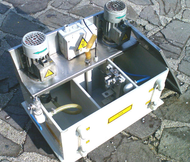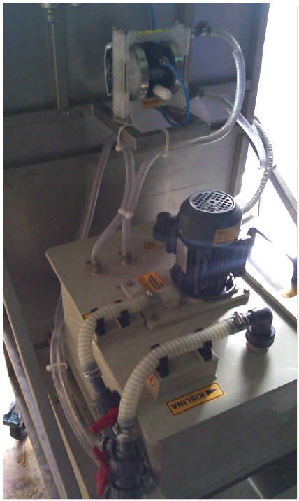 | Za prirpavo jedkala pa se dodatno lahko izdobavi še sodovna črpalka CLASICA s katero varno prečrpavamo jedkalo v napravo iz nje in iz soda v sod. | V nekaterih primerih pa želimo iz izmenjevalca ali iz zvarjenca ki ga jedkamo izčrpati vakuunsko še preostalo kemikalijo.Takrat uporabimo in vgradimo v sistem še membranske črpalke katere ustvarijo podtlak in izčrpajo še preostalo jedkalo iz sistema. | | |