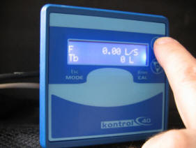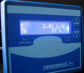 | Zaženete črpalko, na zgornji vrstici kaže trenutni pretok v litrih na minuto na spodnji vstici pa prišteva litre ko doseže 9 litrov izklopi rele ta pa črpalko.