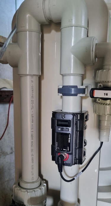 | Primer, nastavitve željene količine in sistema za krmiljenje releja da nam ustavi črpalko/ventil/zasun... : predpostavljeno : sistem sestavljen iz črpalke , krmilne omarice z FX40 krmilnikom ,cevovodom in nanj i priključenim senzorjem SFW.